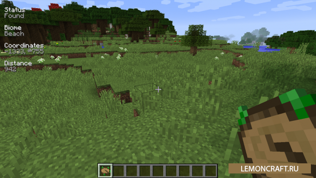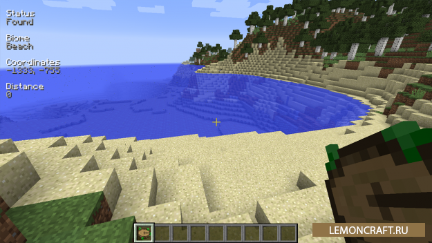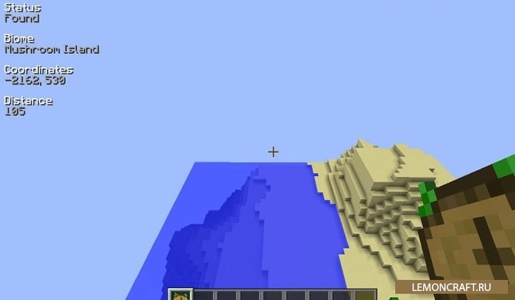 Отличный мод Nature's Compass позволит находить спрятанные биомы. Управление модом очень простое. Нажимаете правую кнопку мыши, выпадает меню мода, где вы можете выбрать нужный вам биом. После этого вам остается только двигаться куда указывает стрелка и вы его найдете.