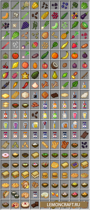 Мод на новую еду Croptopia отлично подойдет для тех, кто любит плотно и вкусно покушать, ведь с этим модом в игре появится большое количество новых ингредиентов и рецептов для приготовление еды. Все новые предметы будут иметь структуры в ванильном стиле.