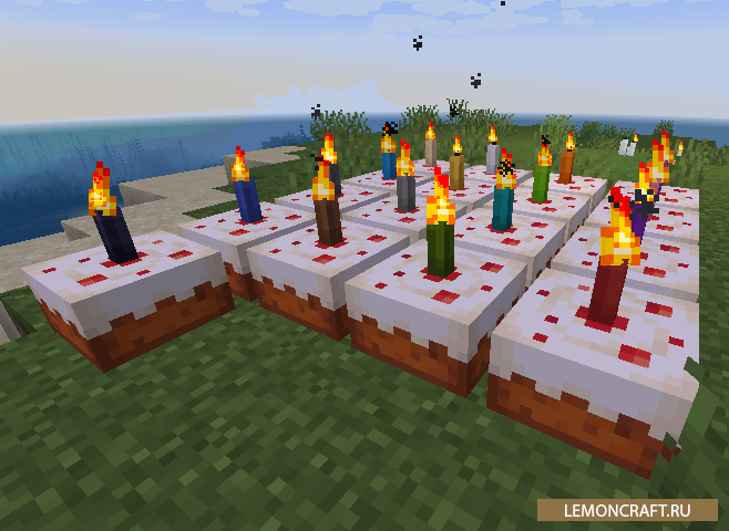 Мод на свечи Candle Backport добавит в игру свечи, которые позаимствованы из новой версии игры Майнкрафт 1.17. Кроме декоративной составляющей мод переносит и функциональную составляющую из новой версии. Вы сможете украшать свечами торты, зажигать и тушить их, красить, а так же, совмещать до четырех свечей.