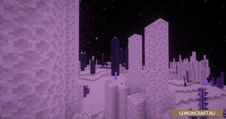 Мод на дополненный Край End Additions & Features дополнит Край несколькими новыми биомами, блоками и структурами, которые совершенно изменят его вид. Теперь в Крае вы встретите огромные деревья, у некоторых ванильных блоков, появятся варианты полублоков и ступенек. Над островами будут кружить новые мобы.